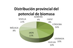 3.958 kilotoneladas equivalentes de petróleo (ktep) al año es el potencial de biomasa en Andalucía, un recurso muy abundante en nuestra región con el que podría cubrirse el 22,5% del total del consumo de energía primaria en Andalucía, o lo que es lo mismo, el equivalente a lo que consumirían energéticamente más de 834.000 habitantes de Andalucía. La principal fuente de este potencial es la biomasa del olivar y de las empresas asociadas a este cultivo: el conjunto de podas, hoja de almazara, orujo, orujillo y hueso de aceituna, subproductos que son aprovechados como biocombustibles de elevada calidad y que suponen aproximadamente el 40% del potencial total. Pero cuenta también con residuos agrícolas procedentes de invernaderos, de viñedos, del cultivo del girasol, así como de cultivos energéticos y residuos forestales. Según los datos que maneja la Agencia Andaluza de la Energía, entidad adscrita a la Consejería de Economía, Innovación, Ciencia y Empleo, de las 8.759.700 hectáreas que configuran Andalucía, un 29,6% es forestal y un 44,3% agrícola. El olivar representa casi el 39% de la superficie agrícola y su aprovechamiento energético permite la sustitución de combustibles fósiles, un mayor autoabastecimiento y diversificación energética y contribuir al mantenimiento de la actividad en zonas rurales. En cuanto a la distribución por provincias del potencial de biomasa destacan tres: Jaén, Sevilla y Córdoba, que suman el 60% del total.
