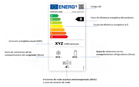 Las nuevas etiquetas energéticas contienen más información que las anteriores y están configuradas en base a pictogramas en su parte inferior que hacen que puedan ser entendibles por todos los ciudadanos europeos, independientemente de la lengua que se utilice en cada país. A través de ellos, se ilustra de manera gráfica las características específicas de los productos; algunos son iguales a la anterior etiqueta, otros se han actualizados y otros son completamente nuevos, como la eficiencia de energía en el modo “HDR” para televisiones y pantallas o el tiempo del lavado para lavadoras.