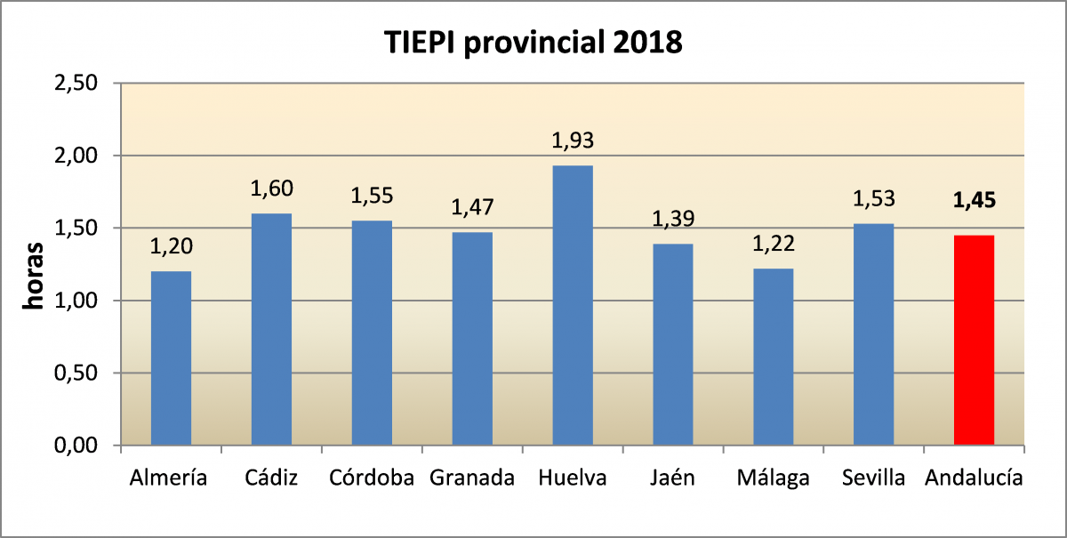 La Agencia Andaluza de la Energía, entidad adscrita a la Consejería de Empleo, Empresa y Comercio, ha informado a través del Centro de Evaluación y Seguimiento Energético de Andalucía, CESEA, que la calidad del suministro de electricidad en Andalucía en 2018 ha mejorado un 16% respecto al año anterior. El TIEPI es el principal indicador de la calidad del suministro de electricidad e indica el tiempo medio anual que un consumidor ha estado sin suministro eléctrico en su hogar. En 2018 el TIEPI se ha situado en 1,45 horas, reduciéndose en 16 minutos frente al dato de 2017.