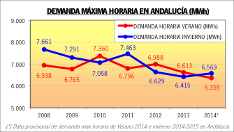 La demanda máxima horaria en Andalucía alcanzó el día 20 de enero 6.569 MWh, un 2,4% más que el invierno pasado