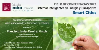 Francisco Javier Ramírez, director gerente de la Agencia Andaluza de la Energía, impartirá la conferencia: Programas de financiación para la mejora de la Eficiencia Energética, en la segunda sesión dentro del Ciclo de Conferencias: “Sistemas Inteligentes de Energía y Transportes (Smart Cities)”, de la Sociedad Digital Cátedra Indra - US de la Universidad de Sevilla. La conferencia tendrá lugar el día 14 de marzo de 2023 a las 18:15 en la Escuela Politécnica Superior de la Universidad de Sevilla.